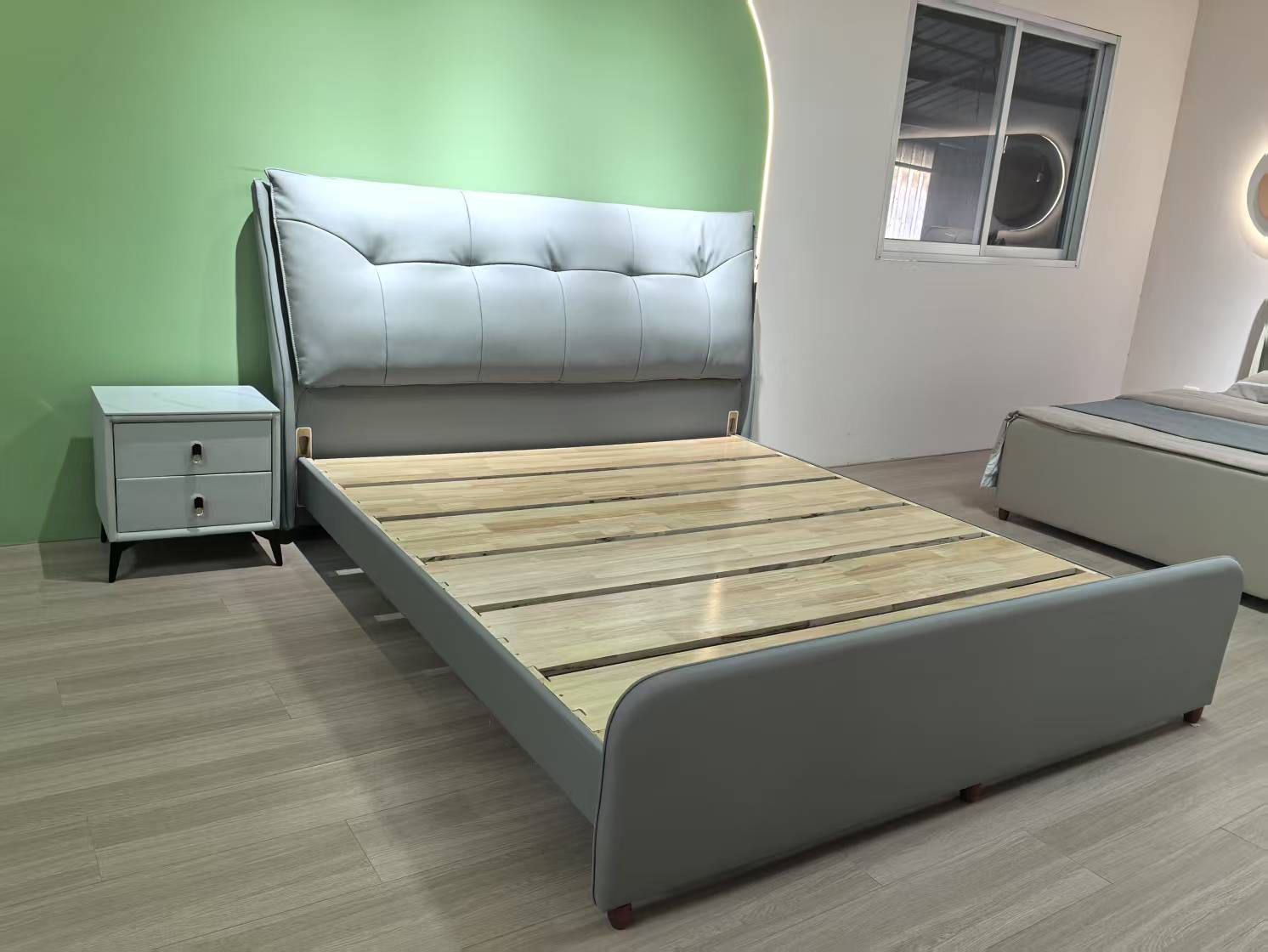 Sky Blue Oak Wood Bed Frame Set with Adjustable Headboard & Rockboard Bedside Table – Model 201